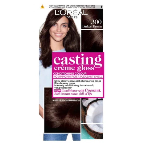 L’Oreal Casting Creme Gloss Hair Dye with Honey Conditioner Darkest Brown 300 – ammonia free