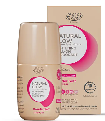 Eva Skin Care Natural Glow Powder Soft 48H Lightening Roll-On Deodorant with Vitamins, Grapefruit & Licorice Extract – aluminum free, parabens free, alcohol free