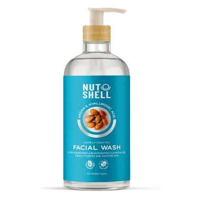 Nut Shell Ultra Nourishing, Rejuvenating & Cleansing Facial Wash with Argan Oil & Hyaluronic Acid for All Skin Types – fragrance free, soap free