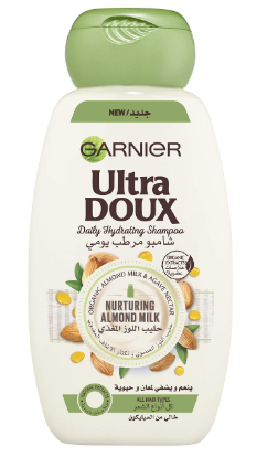Garnier Ultra Doux Daily Hydrating & Nurturing Shampoo with Organic Almond Milk & Agave Nectar for All Hair Types – vegan, parabens free, silicone free
