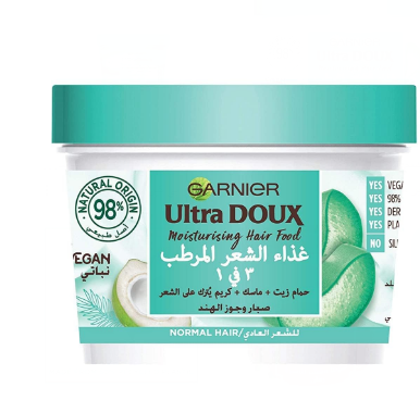 Garnier Ultra Doux 3in1 Moisturizing Hair Food Treatment with Coconut & Aloe Vera Extracts for Normal Hair – vegan, silicone free, artificial colorants free 390 ml