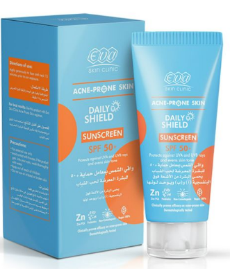 Eva Skin Clinic Daily Shield Protecting & Toning Facial Sunscreen with Zinc PCA & Prebiotics for Acne-Prone Skin SPF50+ – vegan, non comedogenic
