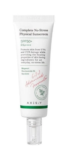 Axis-Y Complete No-Stress Physical Facial Sunscreen with Mugwort, Niacinamide & Squalane SPF50+ PA++++ – vegan