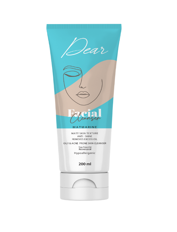 Dear Hypoallergenic Anti-Shine Facial Cleanser with Matmarine, Tea tree Oil & Resveratrol for Oily & Acne-Prone Skin – parabens free