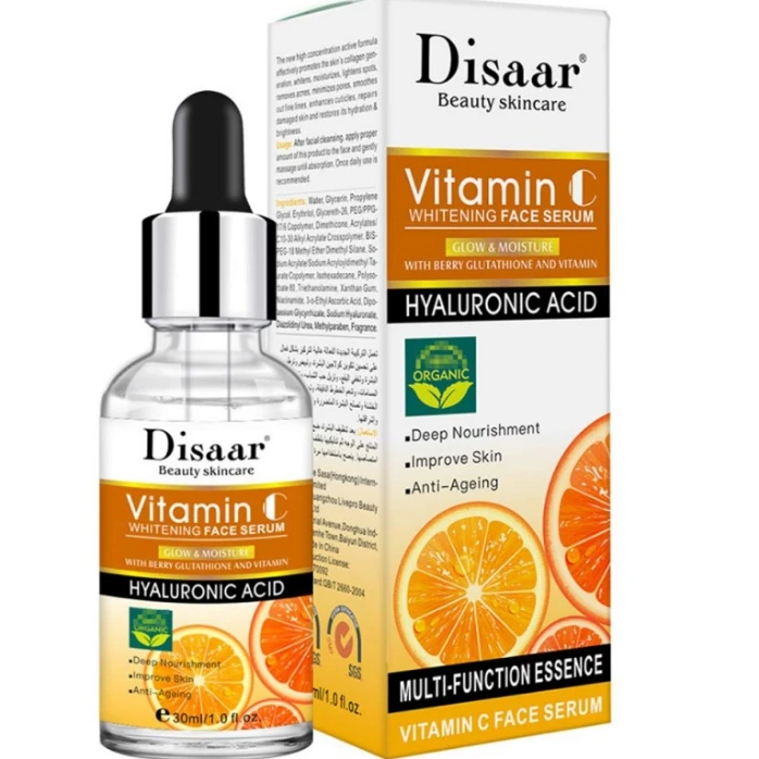 Disaar Organic Anti-Aging, Whitening & Moisturizing Face Serum with Vitamin C, Hyaluronic Acid & Berry Glutathione 30 ml