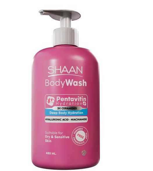 Shaan Hydrating Body Wash with Hyaluronic Acid & Niacinamide for Dry & Sensitive Skin – parabens free, soap free, fragrance free